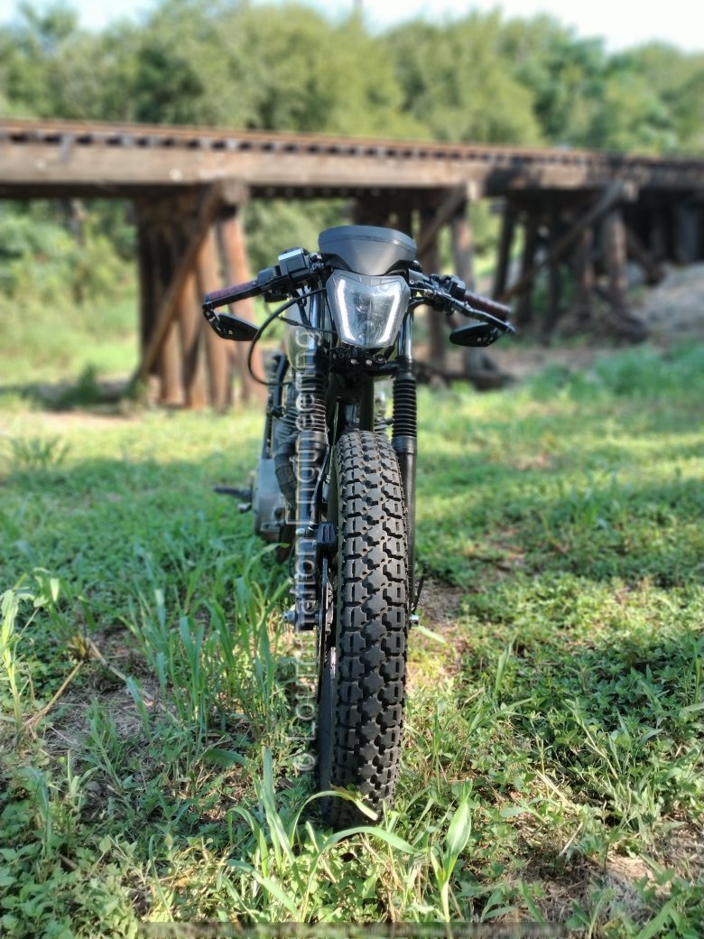 The street-legal aggressive knobby tires provide for a good grip in terrain, allowing this motorcycle the luxury of traveling on all sorts of surfaces. |