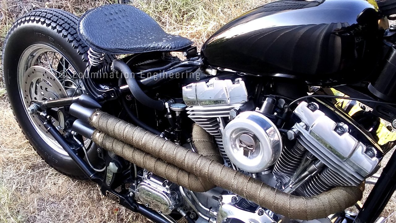 The header wrap was applied in two layers to protect the rider from the heat of the exhaust gases.