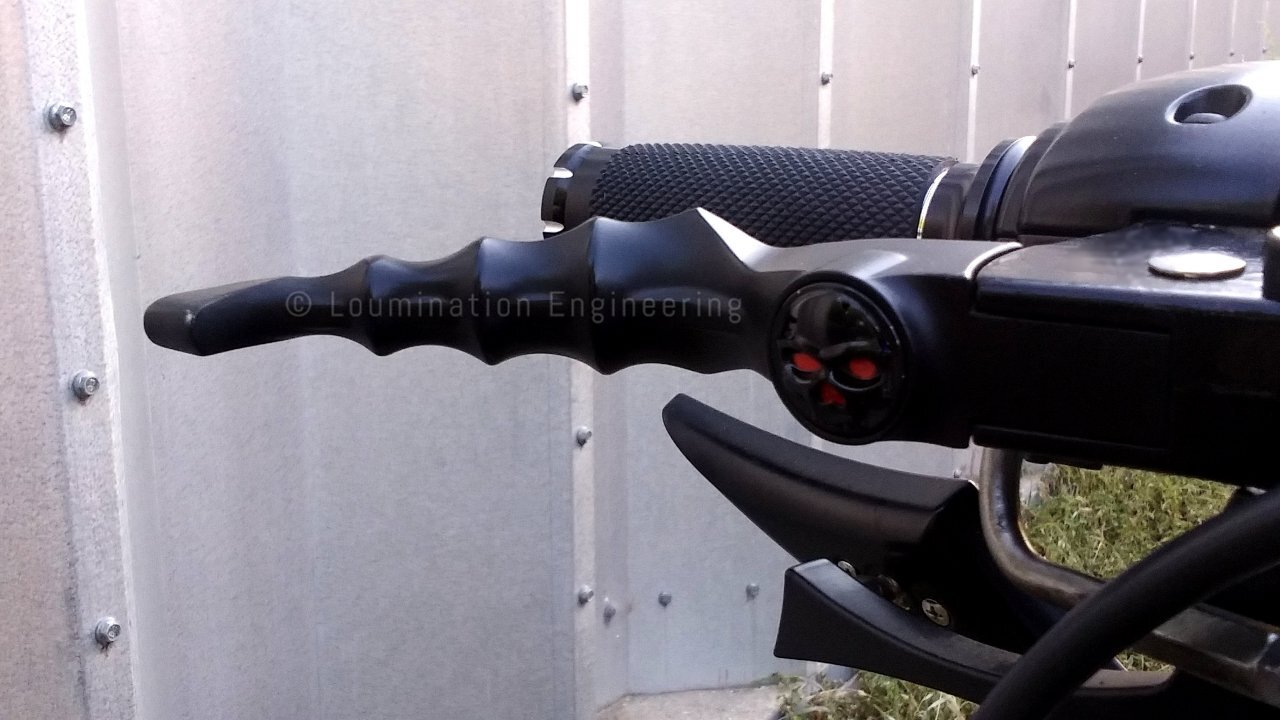 | The handle bar levers are of a bone design to add to the whole desired custom look of the machine. |