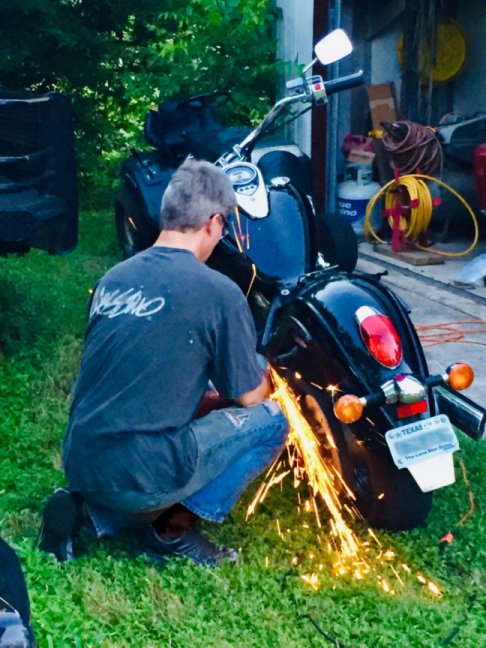 The Vulcan used to be a cruiser weighing in at 650 lbs. It was capable of carrying 2 people in an upright seating position. It was a fully equipped motorcycle capable of traveling on a sunny day or in rain. This particular donor motorcycle came with an optional windshield, floor boards and other factory and aftermarket accessories. The stance of cruiser motorcycles is normally pretty high to allow for comfortable supension travel and good lean angle. That is the exact opposite of the idea of a cafe racer/bobber which requires lower stance, single seat and stiffer suspension. The following pictures tell the story of the transformation process that the Vulcan underwent in order to become a cafe racer. |
