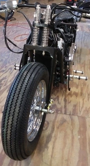 we had to make one custom. With the bearing in hand, the assembly was not as easy as expected. The stem was not up to spec so it did not fit and was hampering any assembly efforts. Eventually, with some machining and "convincing", we managed to put the fork together and install it on the bike. The stance was absolutely perfect, as desired. The customer was happy and that's all that matters. |