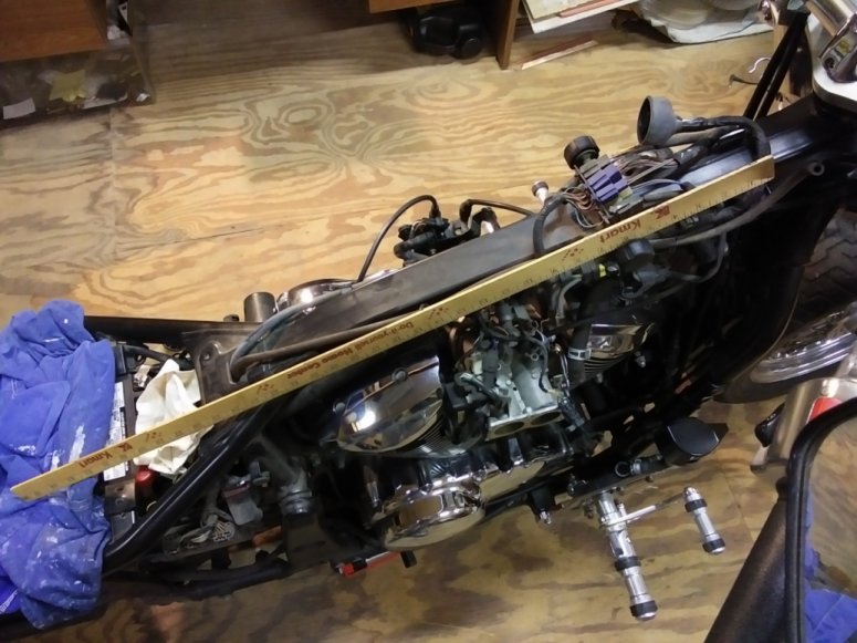 To complement the drop on the front of the frame, we needed to also drop the rear end. That required plenty of measuring,
