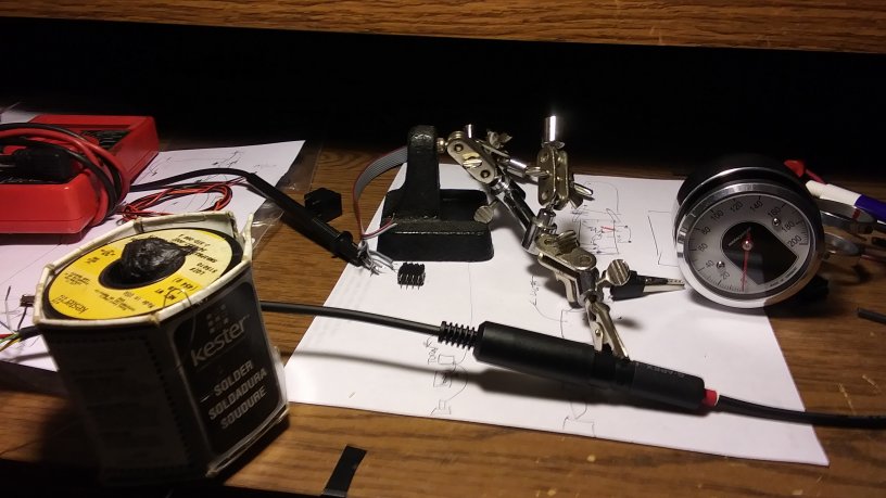 It required some wiring customization and we also chose to not hardwire it into the harness but use a connector instead. The assembly was tested on a test bench first. The speedometer part was tested using a function generator producing square pulses at specific frequencies that the speedometer would translate into proper needle deflection indicating specific speed. We were pleasantly surprised that the German manufacturer of the speedometer supplied documentation on how to calibrate the unit for the pulses from any motorcycle speed sensor. It made our job much easier and the calibration was accomplished in just one easy step. |